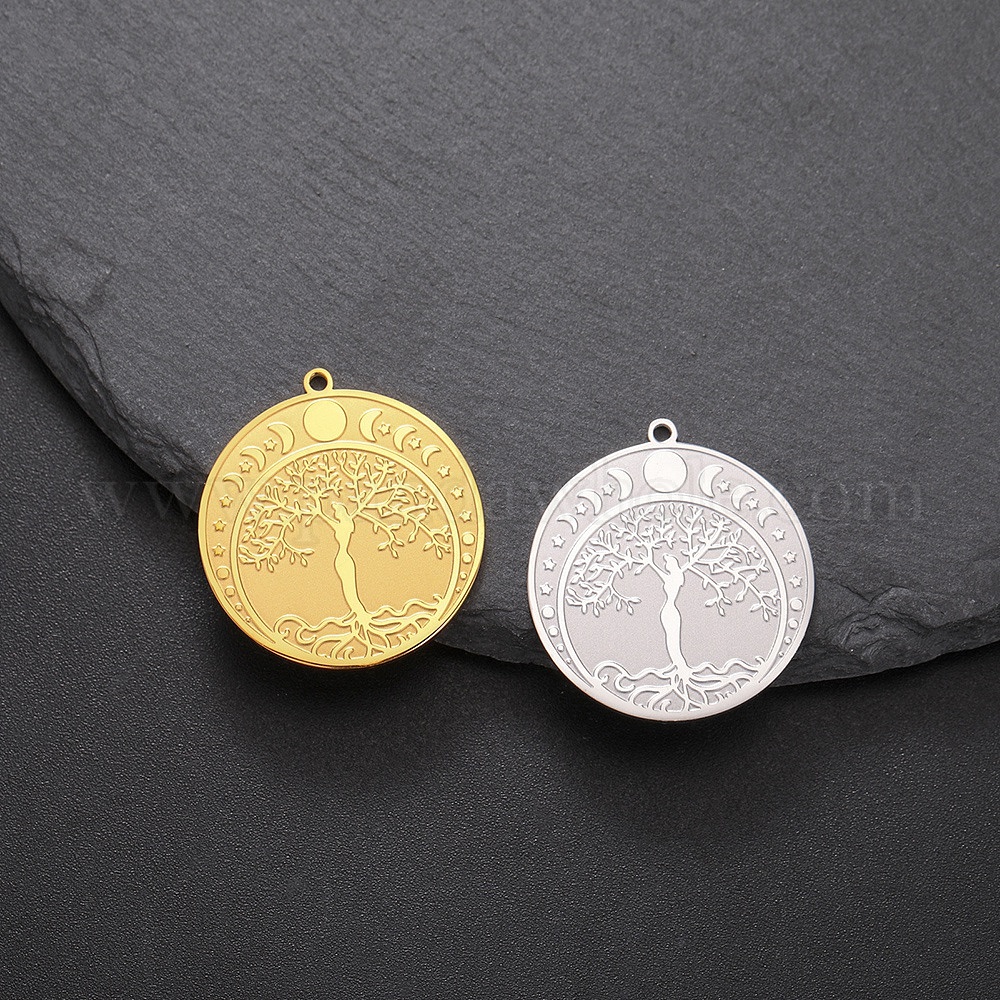 Кулон из нержавеющей стали, плоские круглые с дерева жизни (02TQQP)