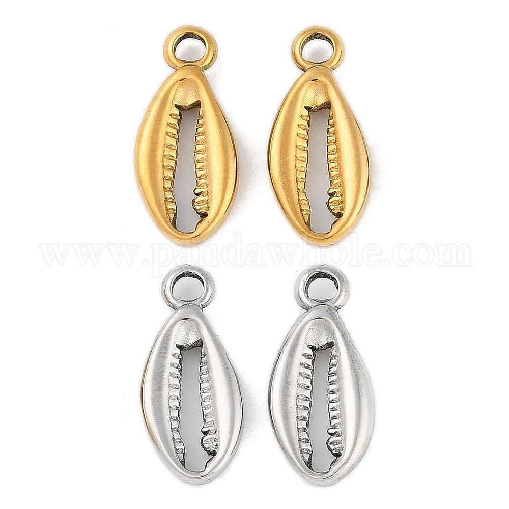 • Нержавеющая Сталь Цвет Не тускнеющие 304 подвески из нержавеющей стали, шарм из ракушек, цвет нержавеющей стали, 17x8x2.6 мм, отверстие : 2.1 мм