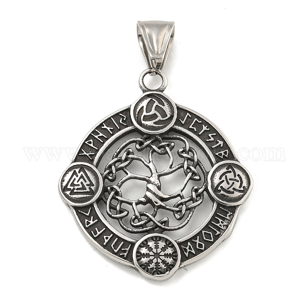 316 хирургические подвески из нержавеющей стали, плоский круглый с подвеской в виде руны и дерева