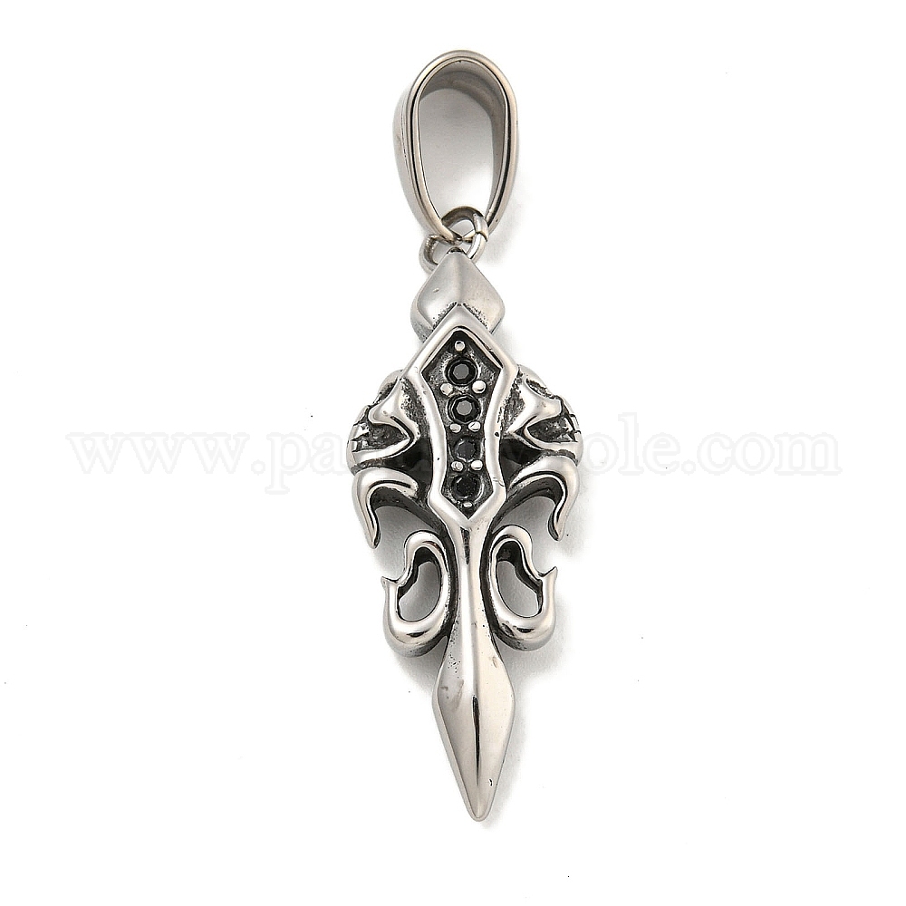 • Античное Серебро 316 хирургические подвески из нержавеющей стали, со стразами, очарование меча, античное серебро, 32.5x13x4.5 мм, отверстие : 4.5x8.5 мм