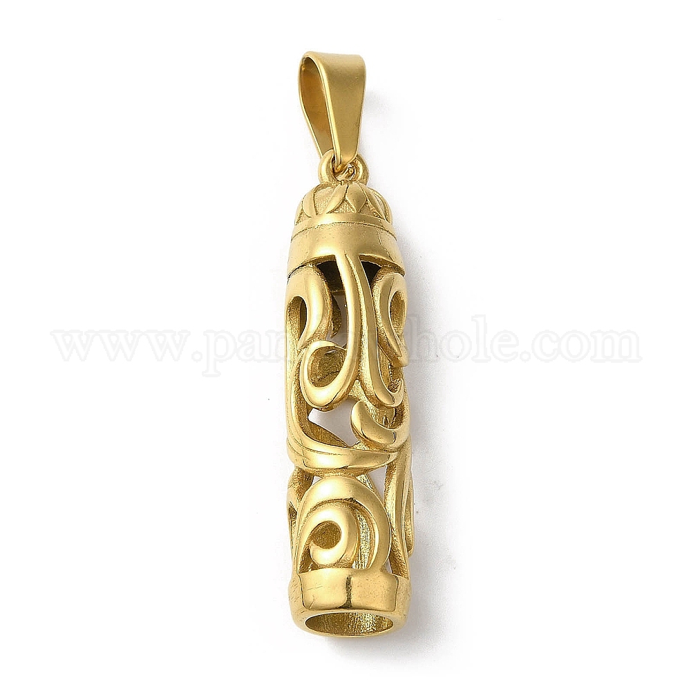 • Золотой Вакуумное покрытие pvd 304 подвески из нержавеющей стали, колонка очарование, золотые, 41x10 мм, отверстие : 10x4.5 мм