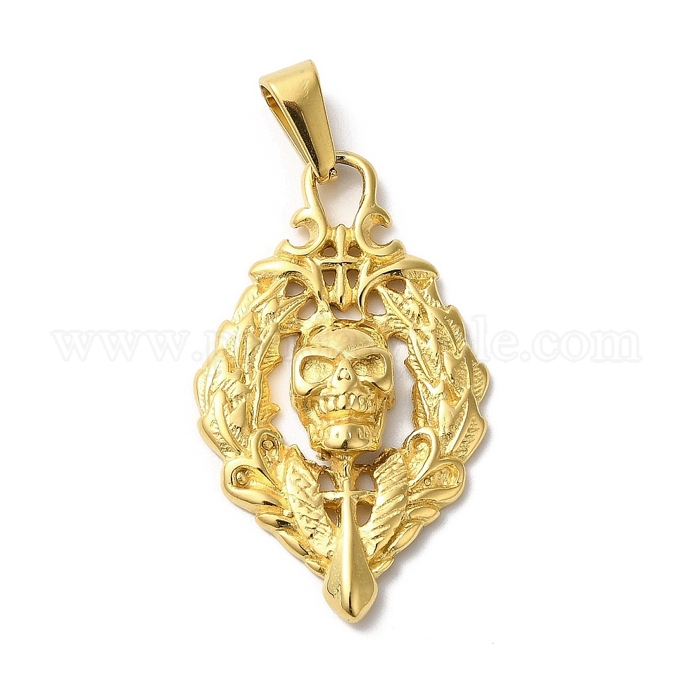 • Золотой Вакуумное покрытие pvd 304 подвески из нержавеющей стали, очарование черепа, золотые, 34.5x20.5x4 мм, отверстие : 3.5x7 мм