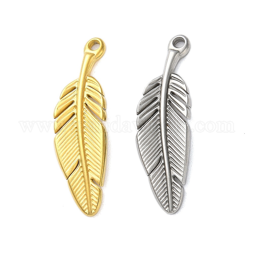 • Золотой 304 подвески из нержавеющей стали, очарование перьев, золотые, 34x10x3 мм, отверстие : 1.6 мм
