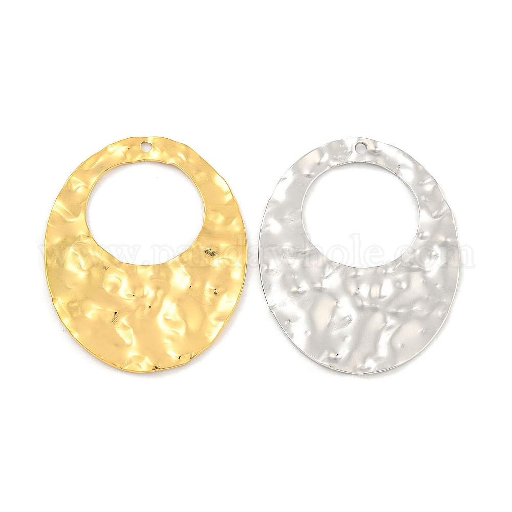• Нержавеющая Сталь Цвет Не тускнеющие 304 подвески из нержавеющей стали, овальный шарм, цвет нержавеющей стали, 44x34x1.5 мм, отверстие : 1.8 мм