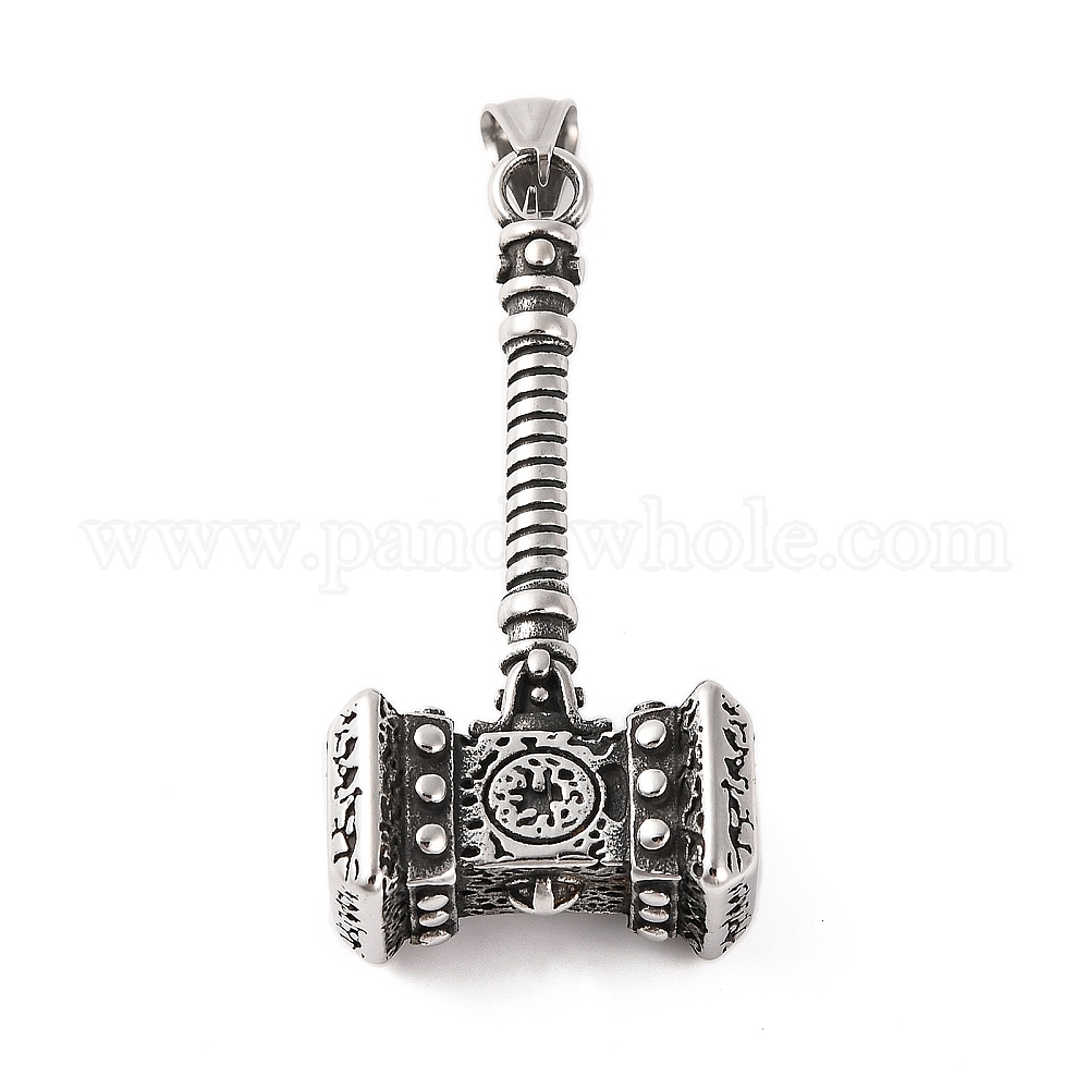 • Античное Серебро Viking 316 большие подвески из хирургической нержавеющей стали, молоток очарование, античное серебро, 56.5x28x14.5 мм, отверстие : 9x4 мм