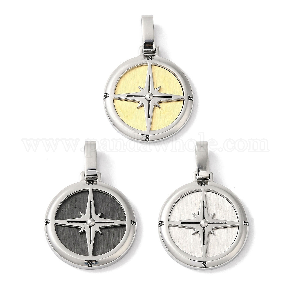 Ионное покрытие (ip) 304 подвески из нержавеющей стали, плоский круглый с подвеской в виде компаса