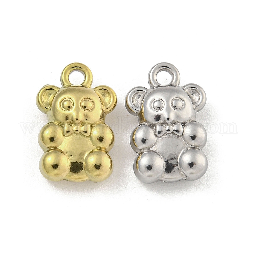 • Настоящее золото 18K Ионное покрытие (ip) 304 брелоки из нержавеющей стали, медведь очарование, реальный 18 k позолоченный, 12.5x8x4 мм, отверстие : 1.5 мм