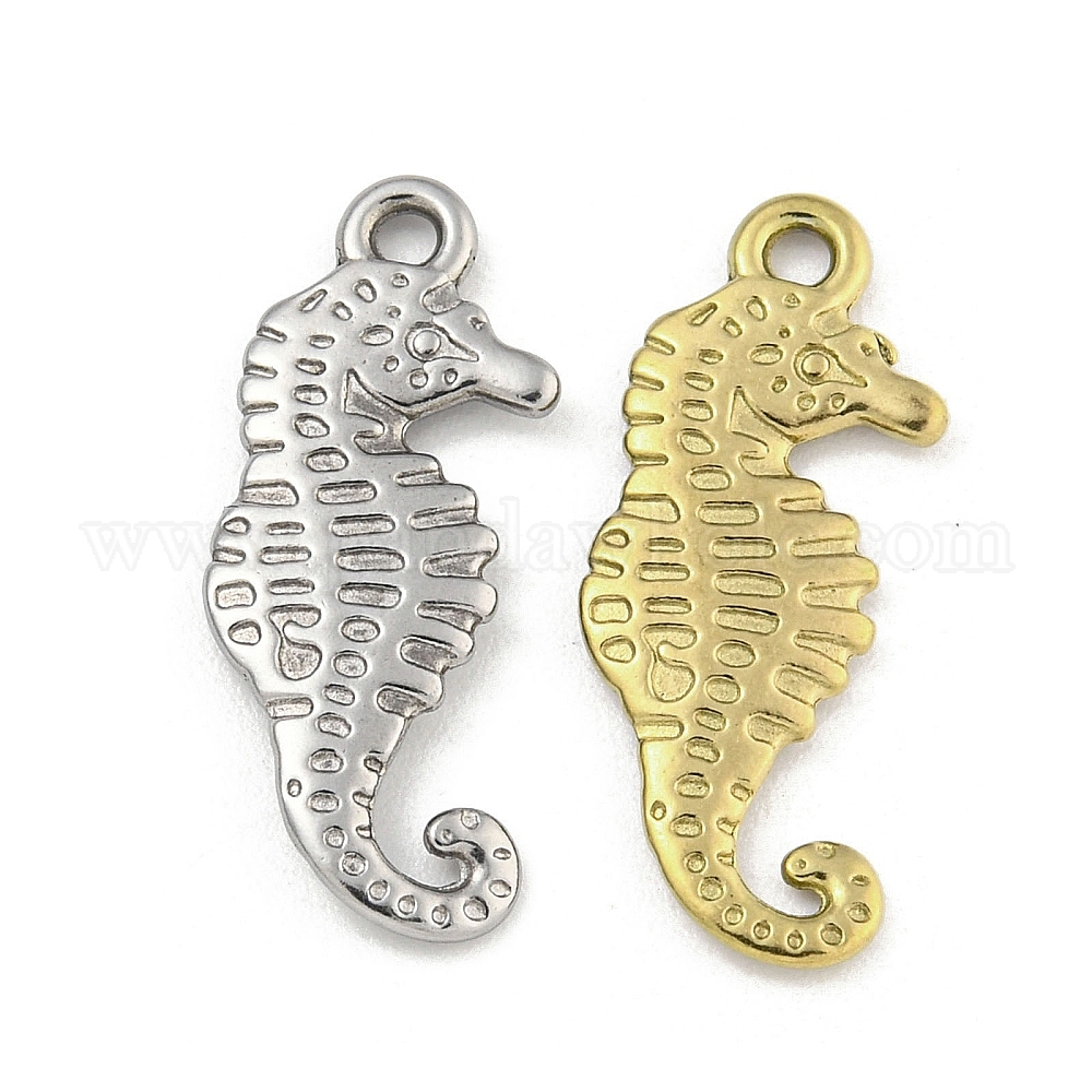 • Нержавеющая Сталь Цвет Не тускнеющие 304 подвески из нержавеющей стали, очарование морского конька, цвет нержавеющей стали, 20.5x18.5x1.5 мм, отверстие : 1.5 мм