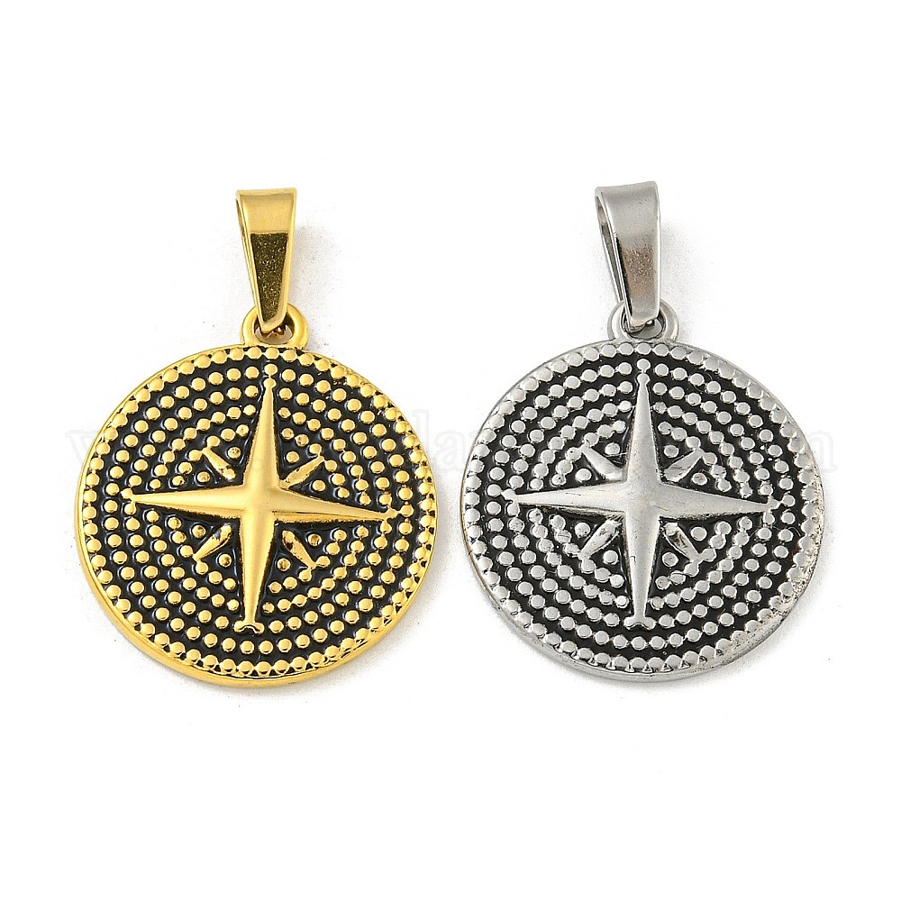 Ионное покрытие (ip) 304 подвески из нержавеющей стали, плоский круглый с шармом в виде звезды