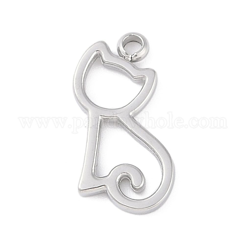 • Нержавеющая Сталь Цвет Не тускнеющие 304 подвески из нержавеющей стали, амулет полого кота, цвет нержавеющей стали, 13.5x7x1 мм, отверстие : 1.4 мм