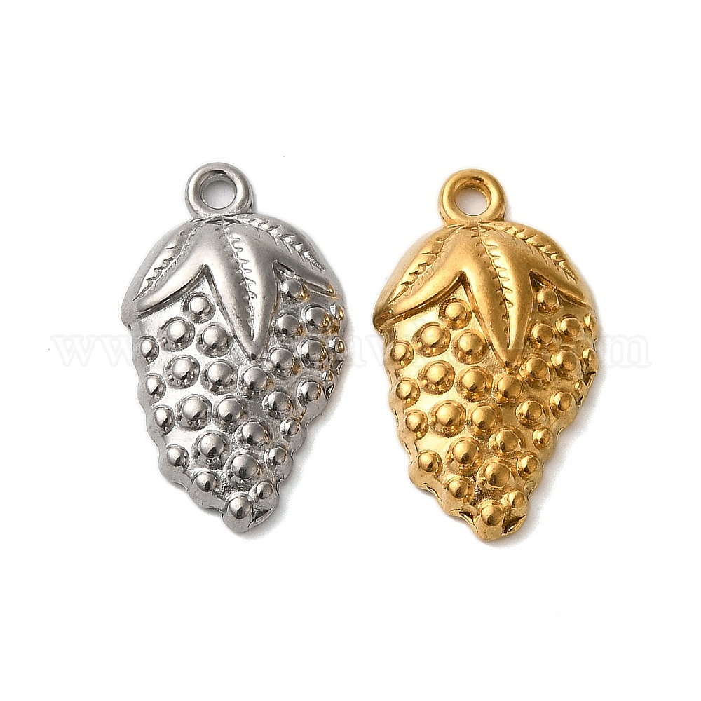 • Настоящее золото 18K Ионное покрытие (ip) 304 подвески из нержавеющей стали, винограда прелести, реальный 18 k позолоченный, 22x13x4 мм, отверстие : 1.6 мм