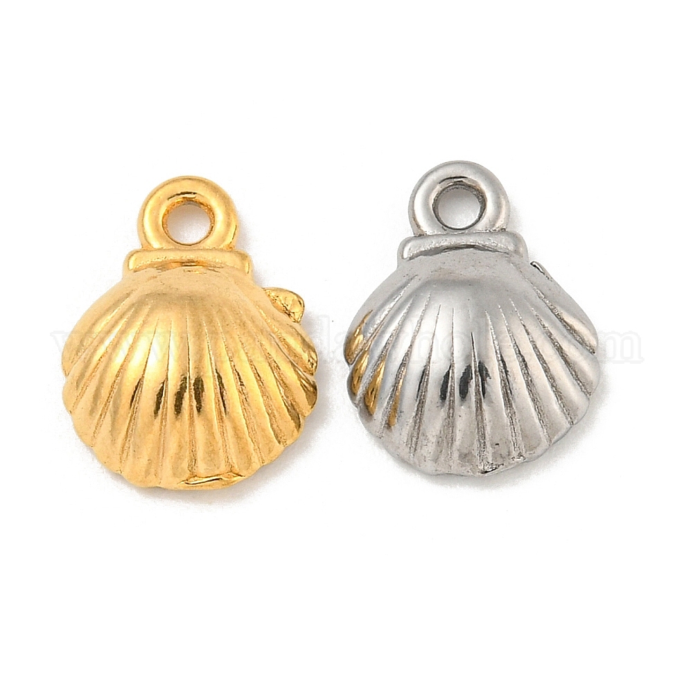 • Настоящее золото 18K Ионное покрытие (ip) 304 брелоки из нержавеющей стали, подвески в форме ракушек, реальный 18 k позолоченный, 12x9x3.5 мм, отверстие : 1.4 мм