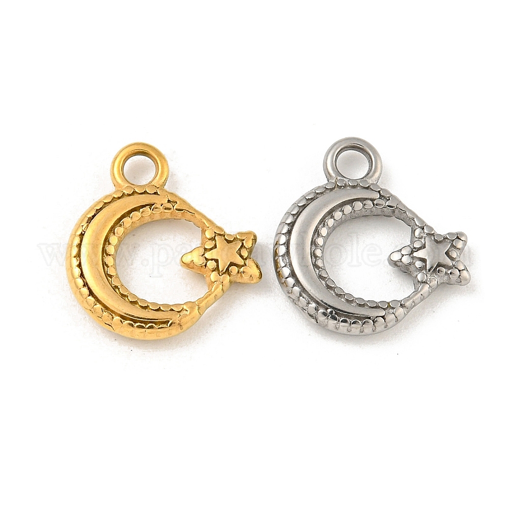 Ионное покрытие (ip) 304 брелоки из нержавеющей стали, луна со звездным шармом
