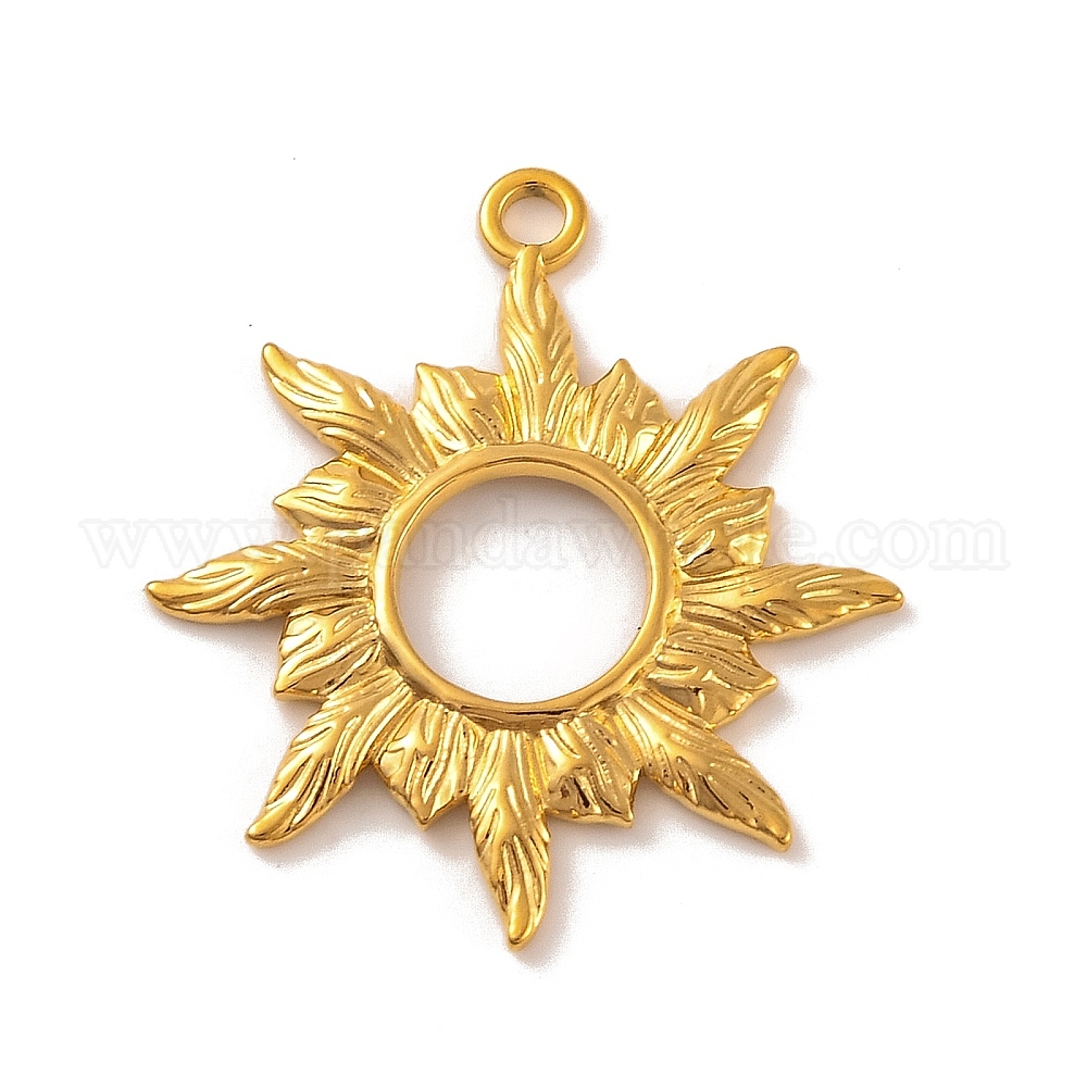 • Настоящее золото 18K Ионное покрытие (ip) 304 подвески из нержавеющей стали, талисманы солнечных лучей, реальный 18 k позолоченный, 27.5x24.5x1.5 мм, отверстие : 2 мм