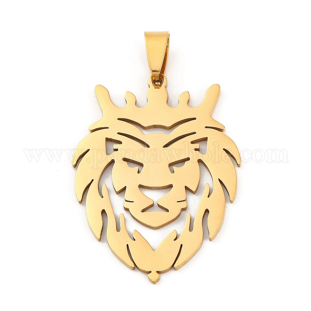 • Золотой Ионное покрытие (ip) 201 подвески из нержавеющей стали, золотые, лев прелести, золотые, 41x30x1.5 мм, отверстие : 9x5 мм