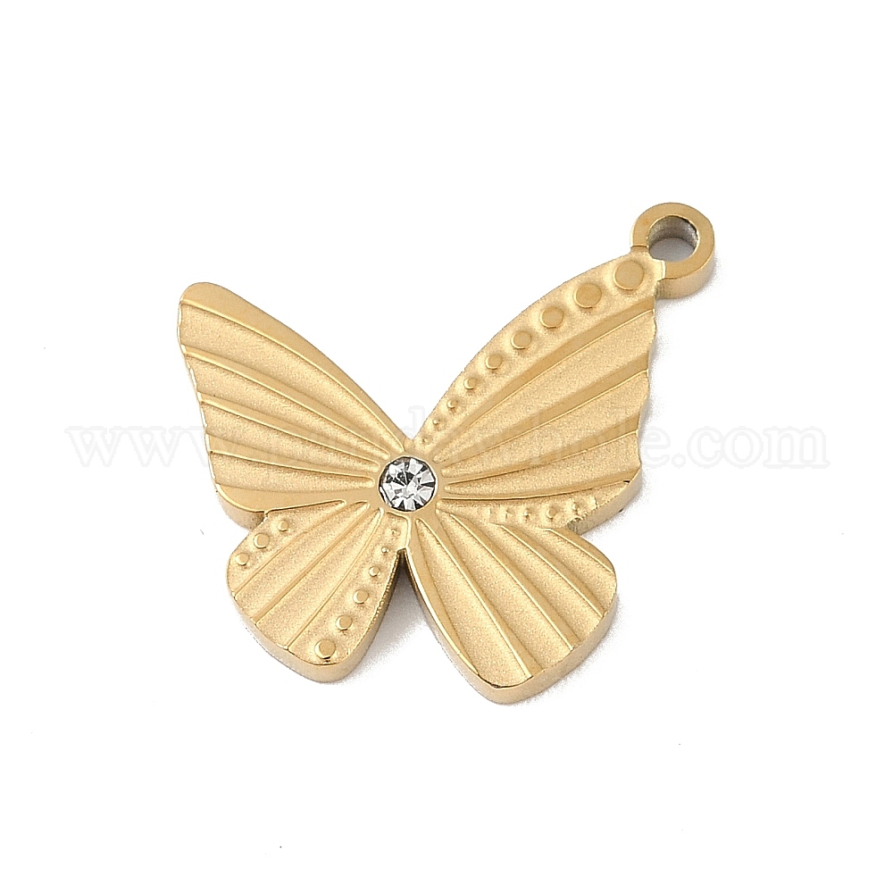 • Золотой Ионное покрытие (ip) 304 подвески из нержавеющей стали, со стразами, бабочка, золотые, 14x16x2 мм, отверстие : 1.2 мм