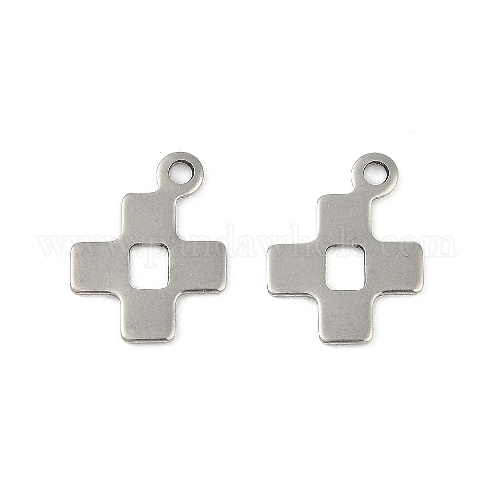 • Нержавеющая Сталь Цвет Не тускнеющие 201 подвески из нержавеющей стали, крест очарование, цвет нержавеющей стали, 13x10x1 мм, отверстие : 1.4 мм