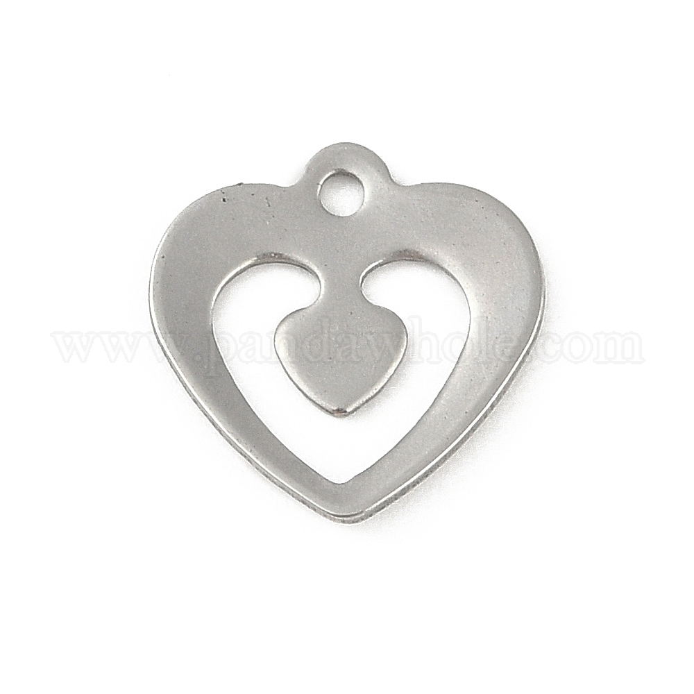 • Нержавеющая Сталь Цвет Не тускнеющие 201 подвески из нержавеющей стали, шарма сердца, цвет нержавеющей стали, 13x13x1 мм, отверстие : 1.4 мм