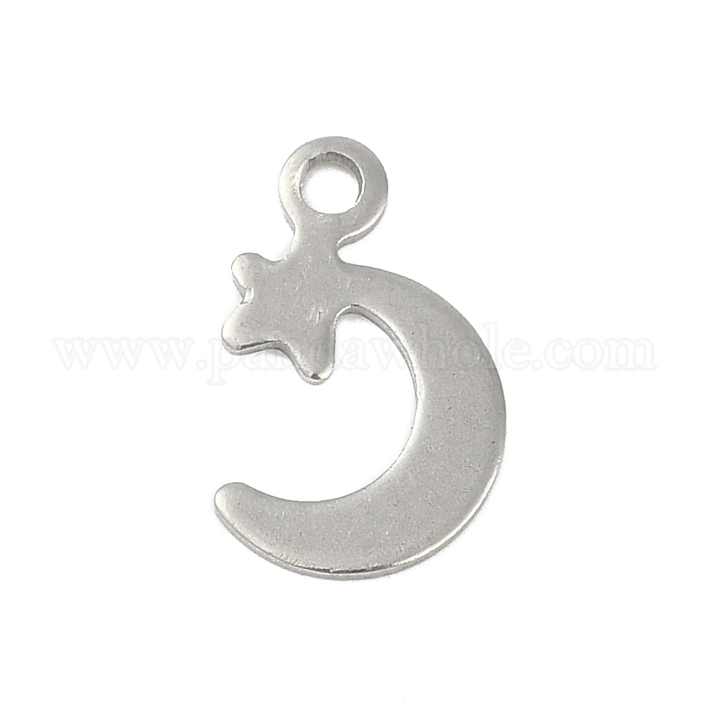 • Нержавеющая Сталь Цвет Не тускнеющие 201 подвески из нержавеющей стали, луна со звездным шармом, цвет нержавеющей стали, 14x9x1 мм, отверстие : 1.6 мм