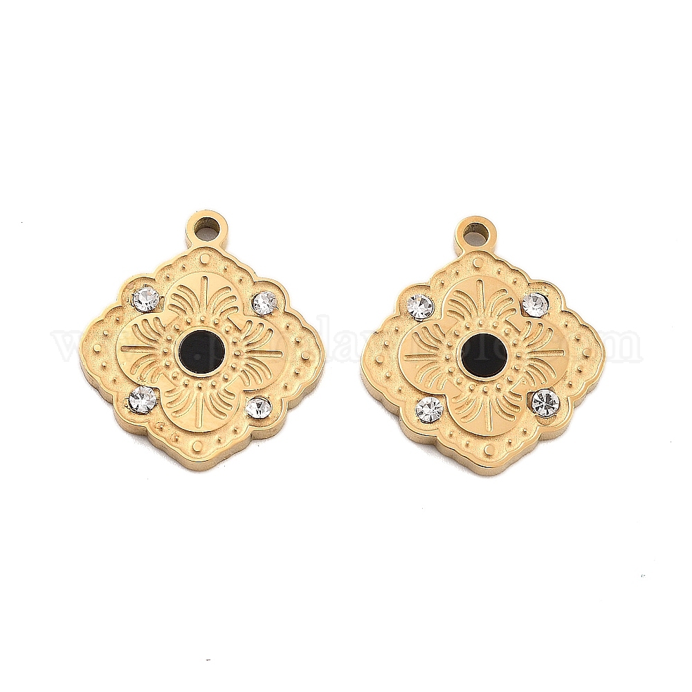 • Золотой Ионное покрытие (ip) 304 кулон из нержавеющей стали, со стразами, ромб, золотые, 15x14x2 мм, отверстие : 1.2 мм