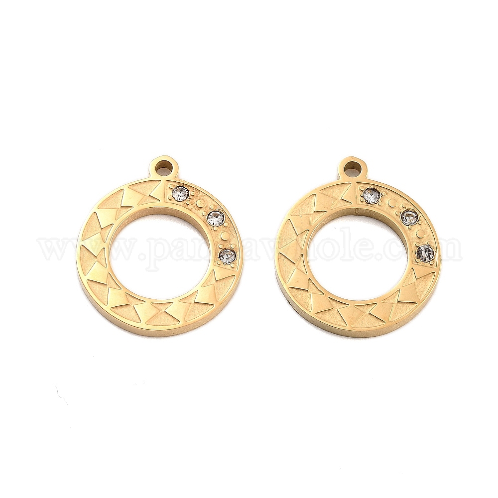 Ионное покрытие (ip) 304 подвески из нержавеющей стали со стразами, круглое кольцо-шарм