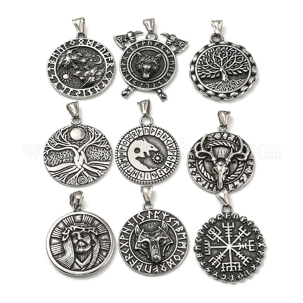 316 хирургические подвески из нержавеющей стали, плоско-круглые, античное серебро