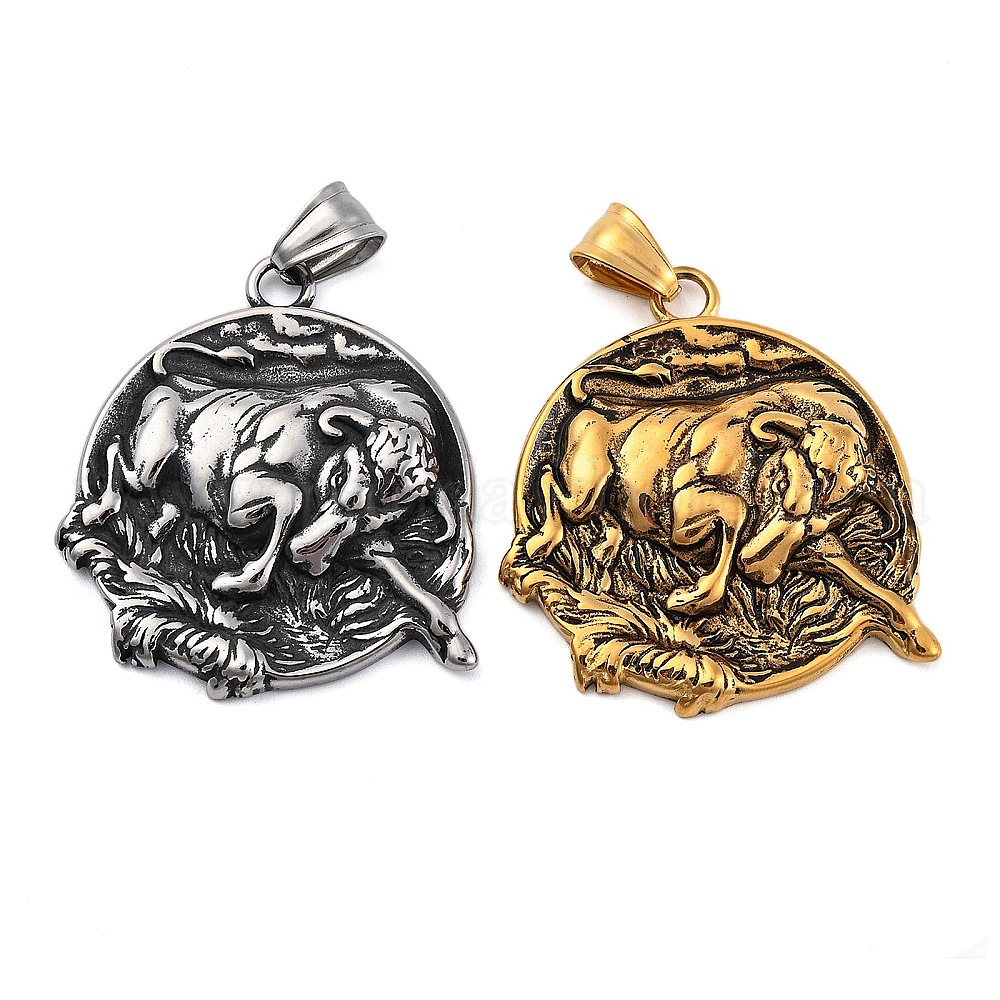 304 подвески из нержавеющей стали, плоский круглый с подвеской в виде быка