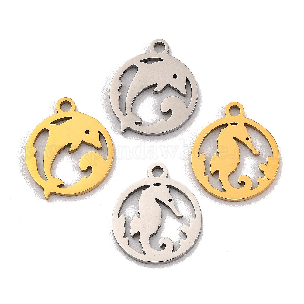 201 прелести нержавеющей стали, лазерная резка, плоский круглый с подвеской в виде морских животных