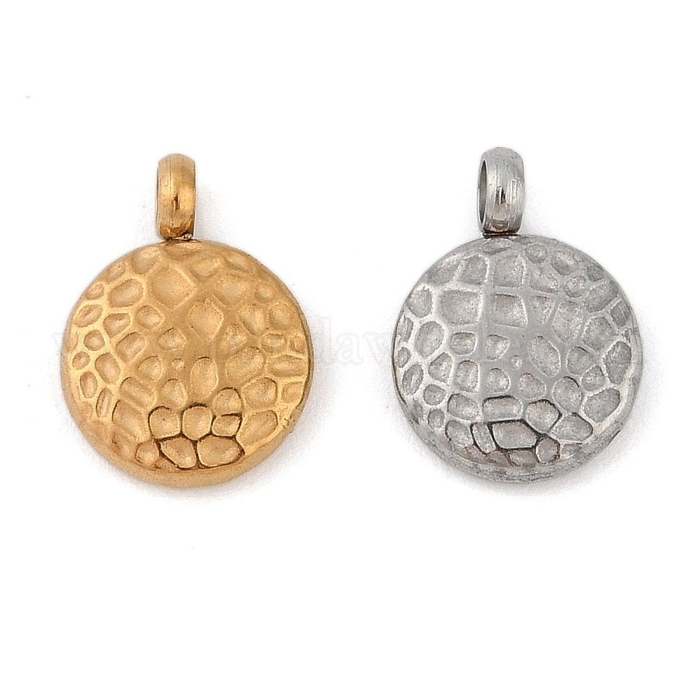 • Золотой Ионное покрытие (ip) 304 брелоки из нержавеющей стали, , плоский круглый шарм, золотые, 11x8x2 мм, отверстие : 1.8 мм