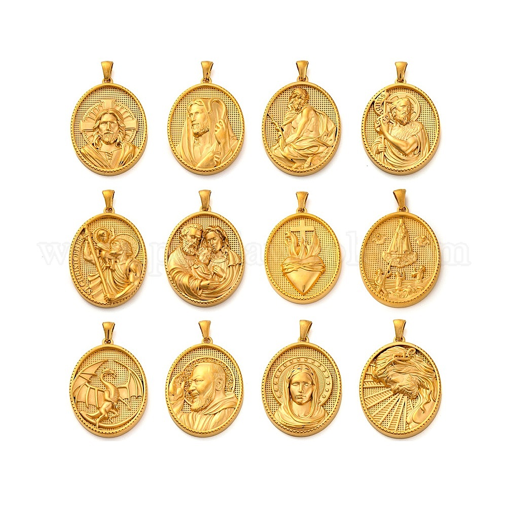 Религия золотистый тон 304 подвески из нержавеющей стали, овальный шарм (02WWTS)