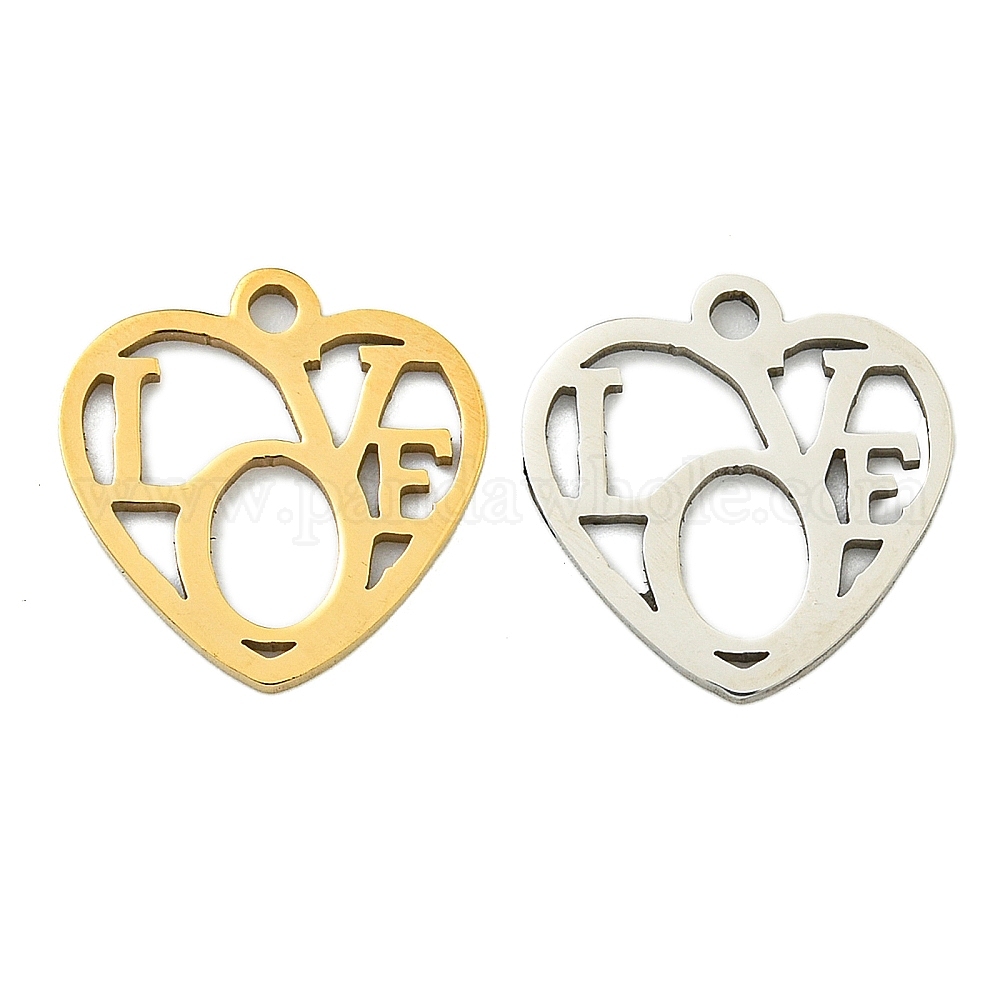 Ионное покрытие (ip) 201 брелоки из нержавеющей стали, сердце со словом любовь очарование, лазерная резка
