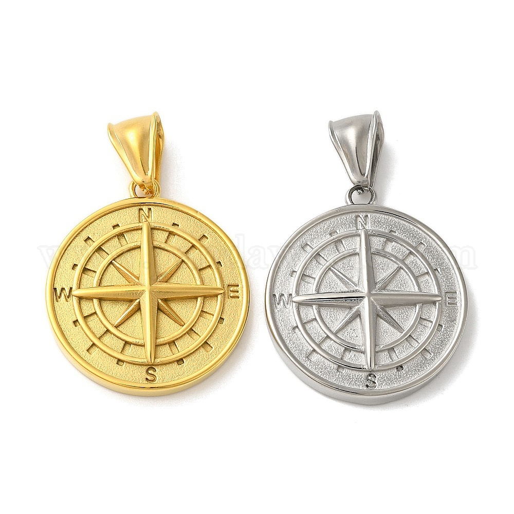 304 подвески из нержавеющей стали, плоский круглый с подвеской в виде компаса