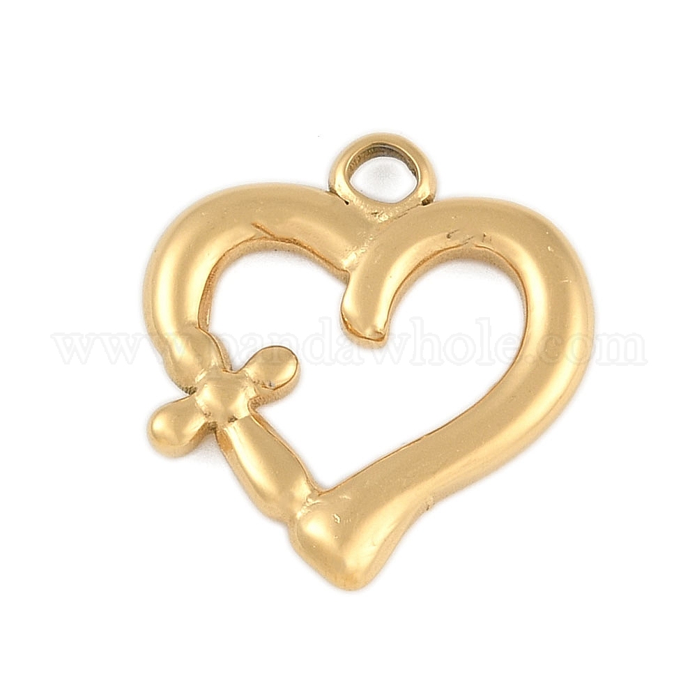 Ионное покрытие (ip) 304 подвески из нержавеющей стали, сердце с крестиком