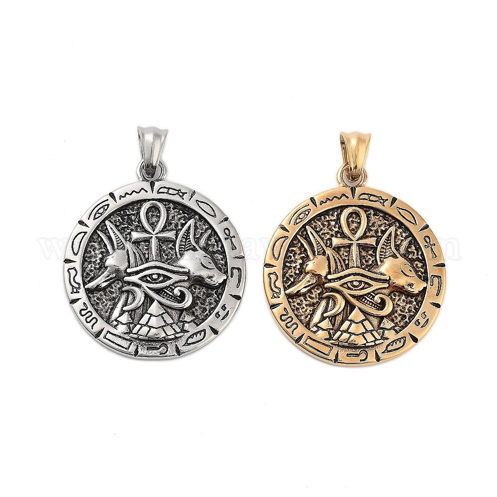 304 подвески из нержавеющей стали, плоский круг с анубисом и египетским крестом анкх и глазом горуса