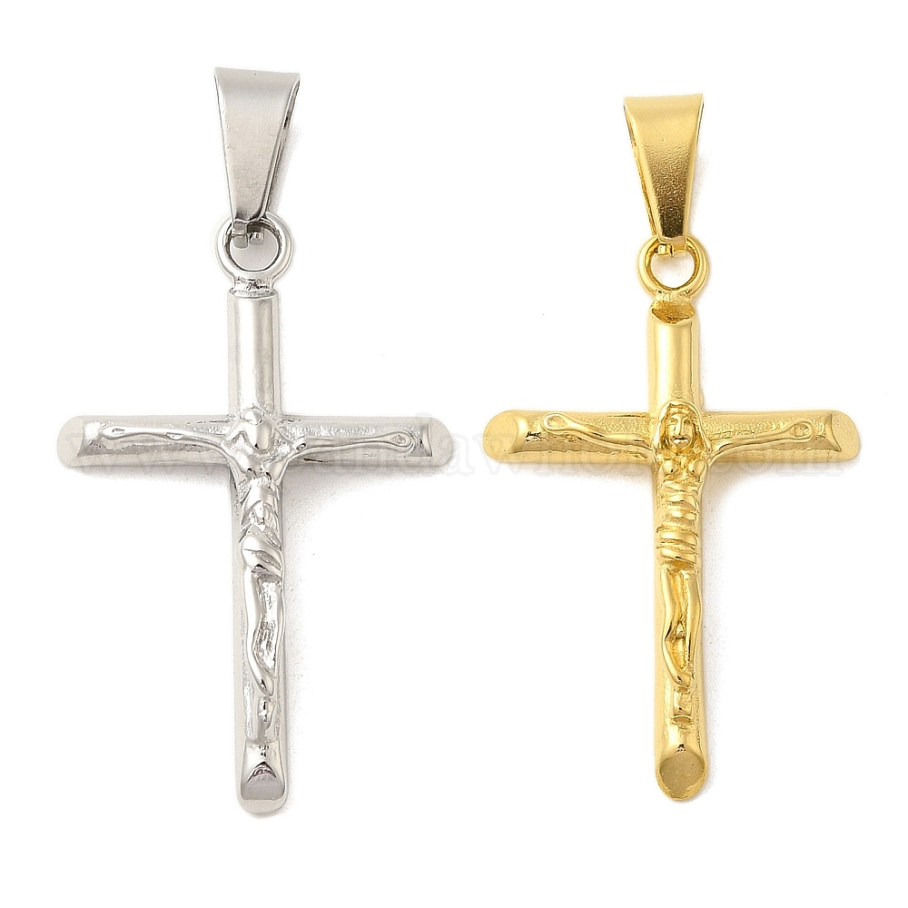 • Золотой Ионное покрытие (ip) 304 подвески из нержавеющей стали, распятие крест с Иисусом, золотые, 36x23x6 мм, отверстие : 9x4 мм