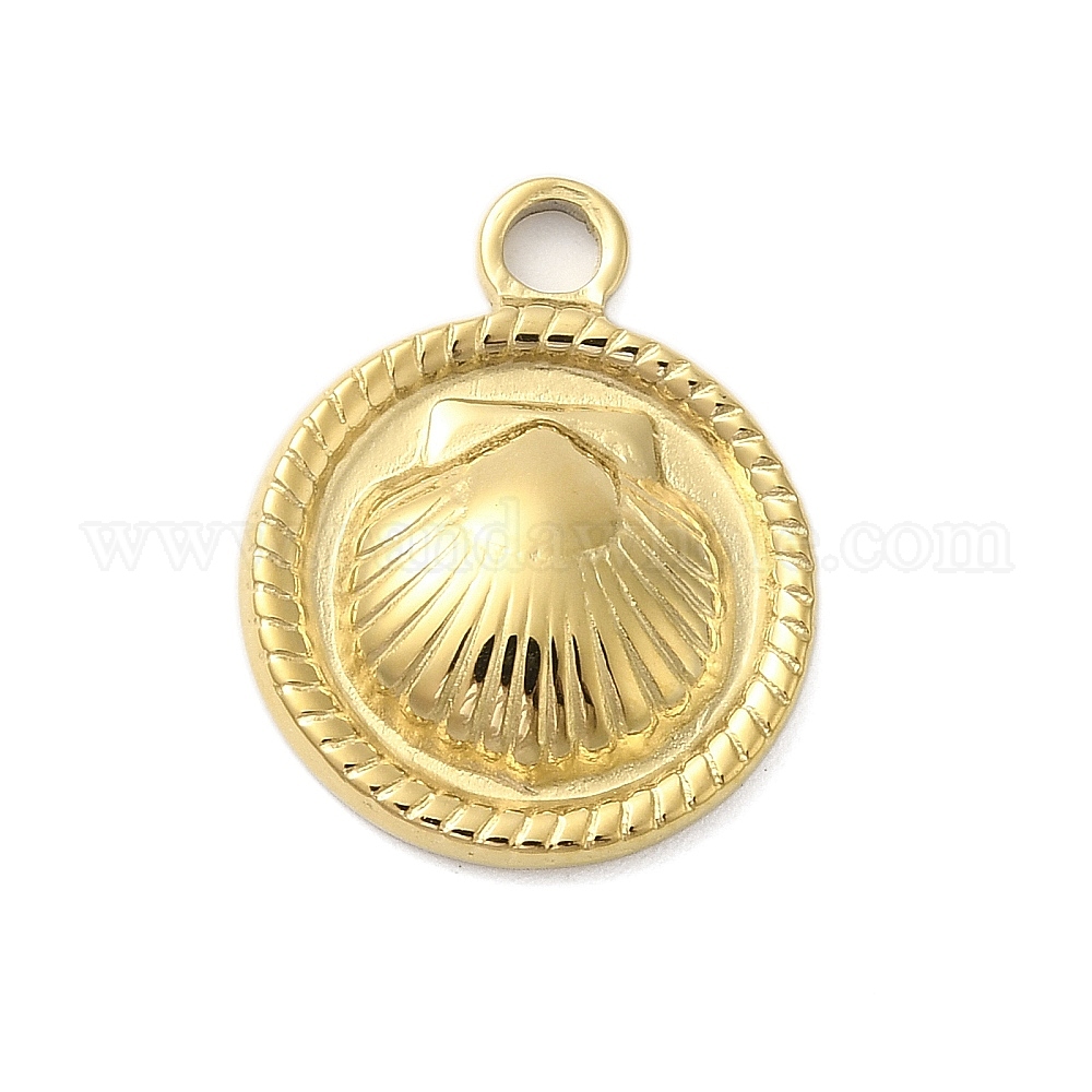 304 подвески из нержавеющей стали, плоский круглый с подвеской в форме ракушки