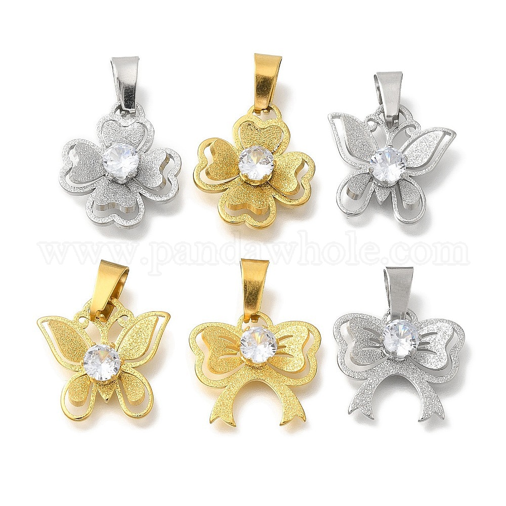 304 подвески из нержавеющей стали, с кристально горный хрусталь, подвеска в виде бабочки/бантика/цветка