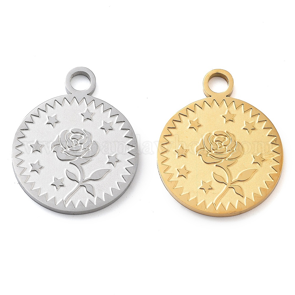 304 подвески из нержавеющей стали, лазерная резка, плоский круглый с розой и звездой