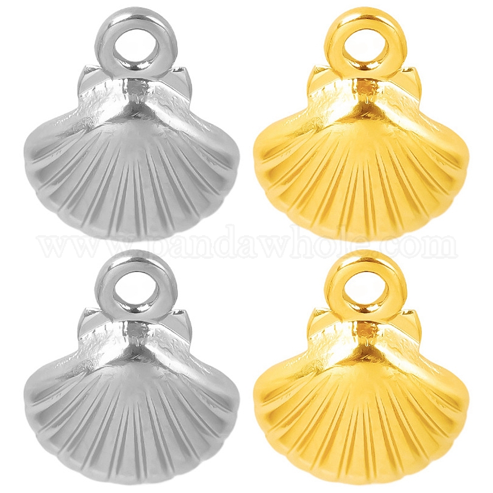 • Золотой 304 прелести нержавеющей стали, шарм в форме ракушки, золотые, 12x10 мм