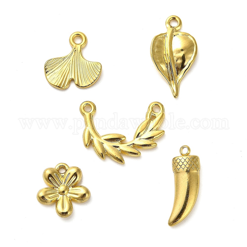 304 подвески из нержавеющей стали, золотые, подвеска в виде цветка/листа/рога