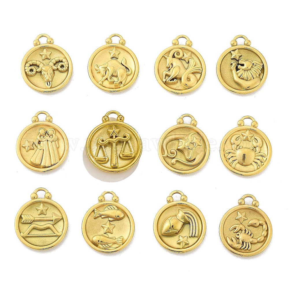 Настоящие 18позолоченные тона 304 из нержавеющей стали, плоский круглый с шармом созвездий