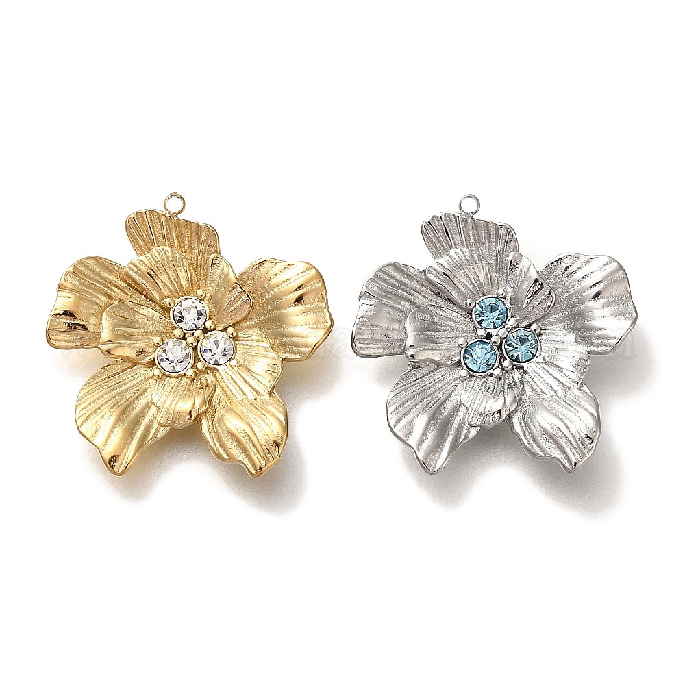 Ионное покрытие (ip) 304 подвески из нержавеющей стали со стразами, цветок (02XYE4)