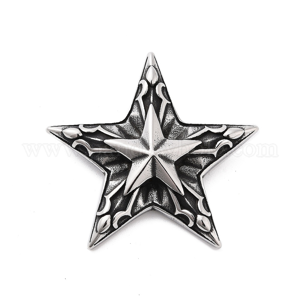 • Античное Серебро Ретро 304 из нержавеющей стали подвески, звезды прелести, античное серебро, 45x47.5x12 мм, отверстие : 8 мм