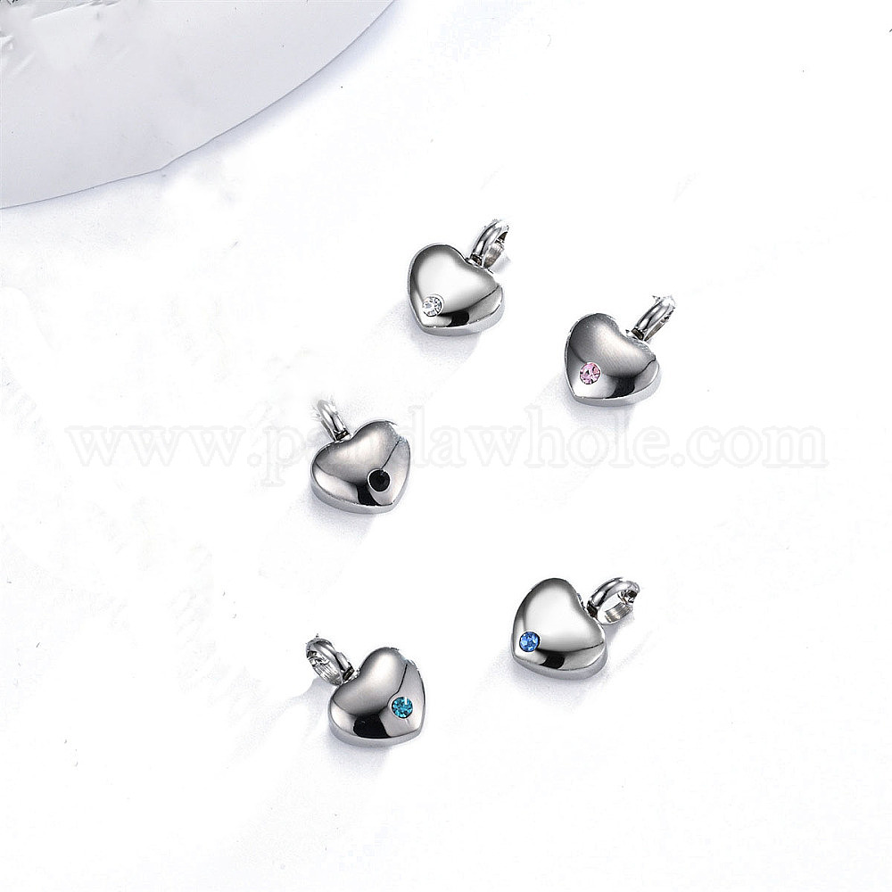 Подвески для флаконов духов из нержавеющей стали со стразами, цвет нержавеющей стали, шарма сердца