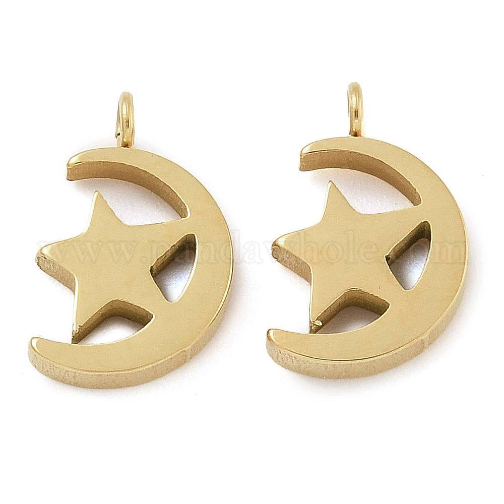 Ионное покрытие (ip) 304 брелоки из нержавеющей стали, луна со звездным шармом