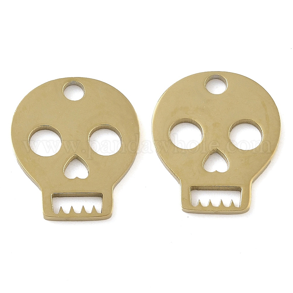 • Настоящее золото 14K Ионное покрытие (ip) 304 брелоки из нержавеющей стали, очарование черепа, реальный 14 k позолоченный, 13.5x11.5x1 мм, отверстие : 1.8 мм