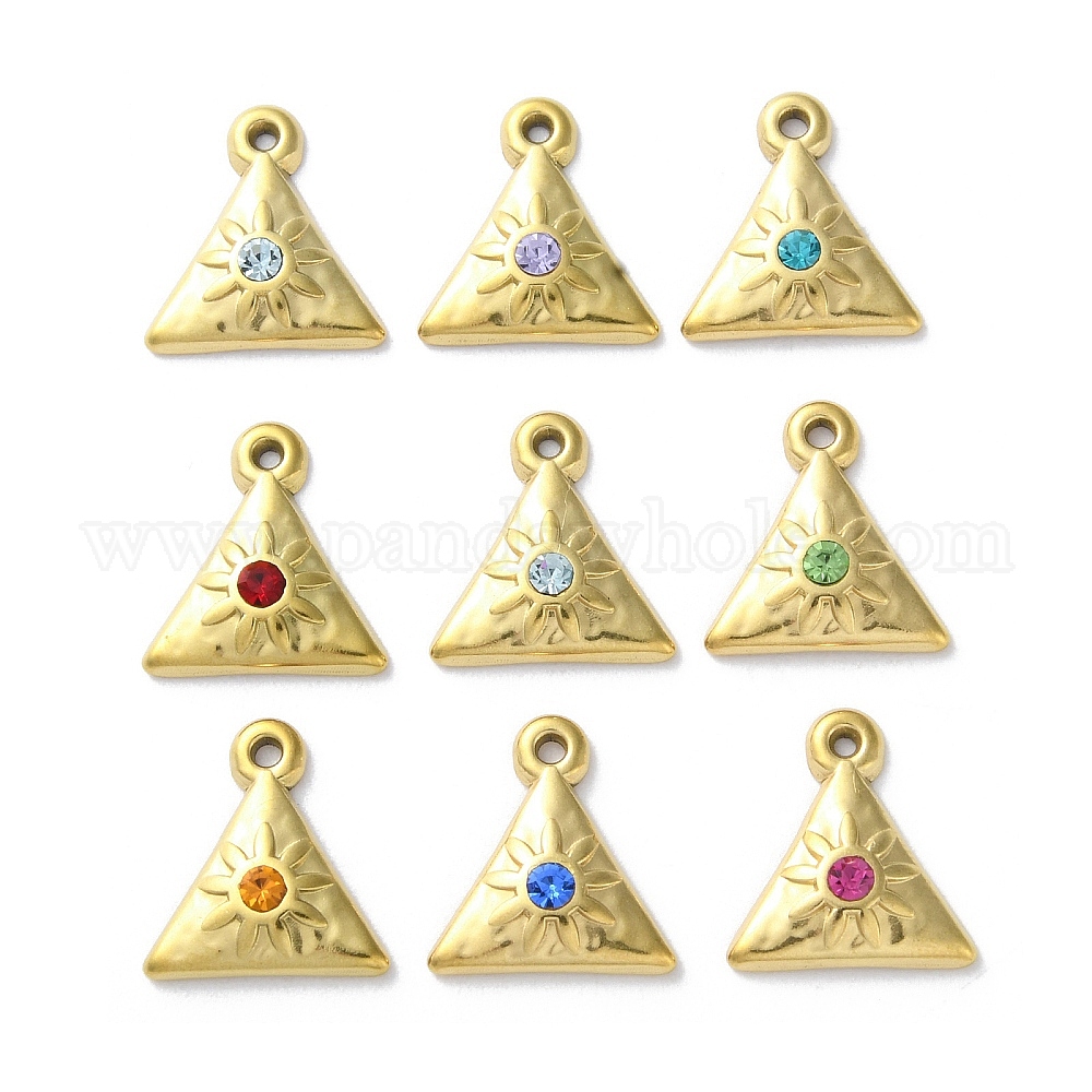 Ионное покрытие (ip) 304 брелоки из нержавеющей стали, со стеклом, треугольник с солнечным шармом, реальный 18 k позолоченный
