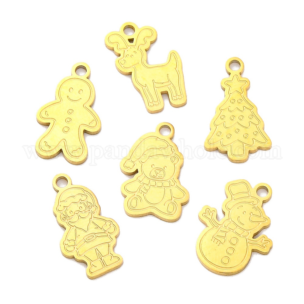 Рождественская тема 201 подвески из нержавеющей стали, лазерная резка, золотые, подвеска олень/дерево/медведь