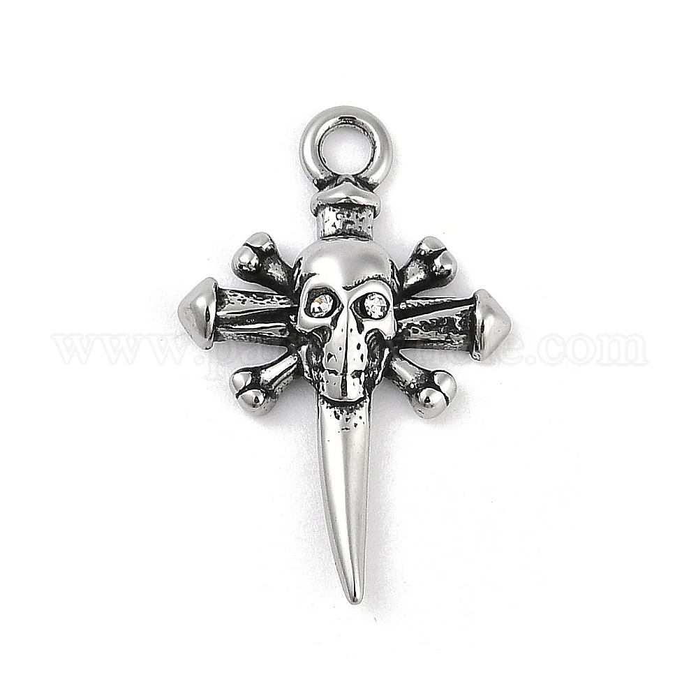 • Античное Серебро 316 хирургические подвески из нержавеющей стали, подвеска в виде креста с черепом, античное серебро, 25x16x4 мм, отверстие : 2.3 мм