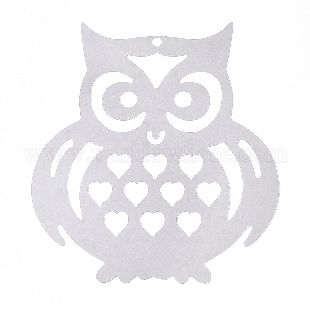 • Нержавеющая Сталь Цвет Антикоррозийные 201 большие подвески из нержавеющей стали, гравированные металлические украшения, сова прелести, цвет нержавеющей стали, 92x82x0.3 мм, отверстие : 3 мм